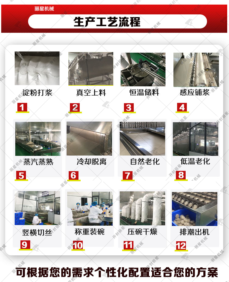 铺浆蒸熟即食粉丝生产线技术参数及基建要求